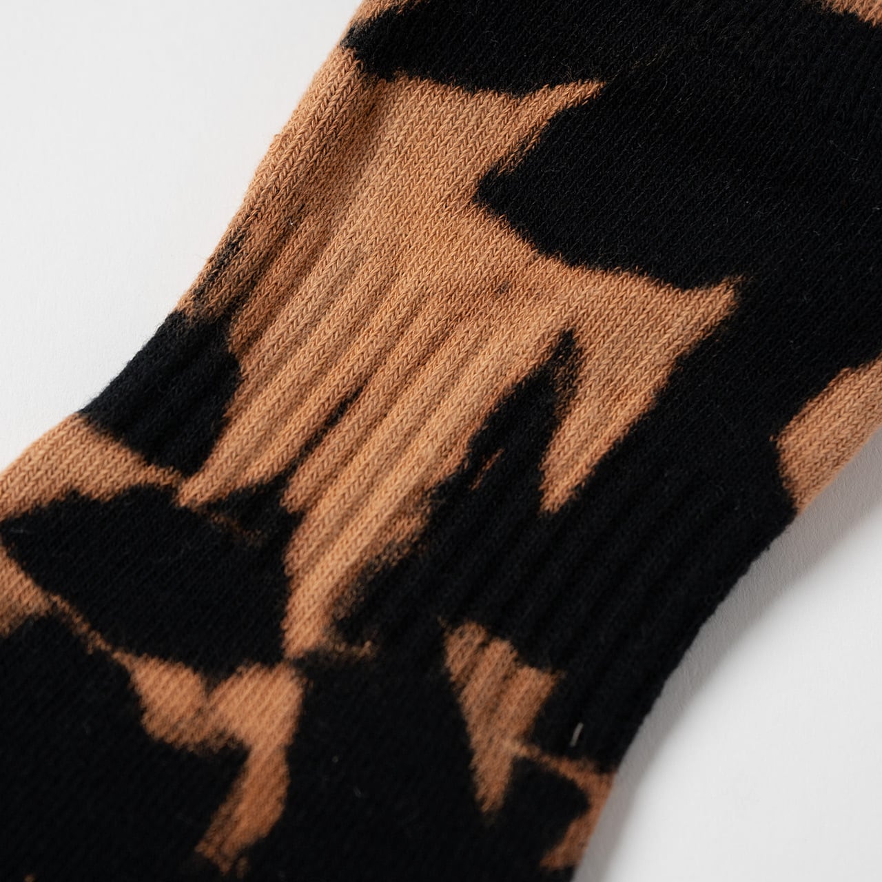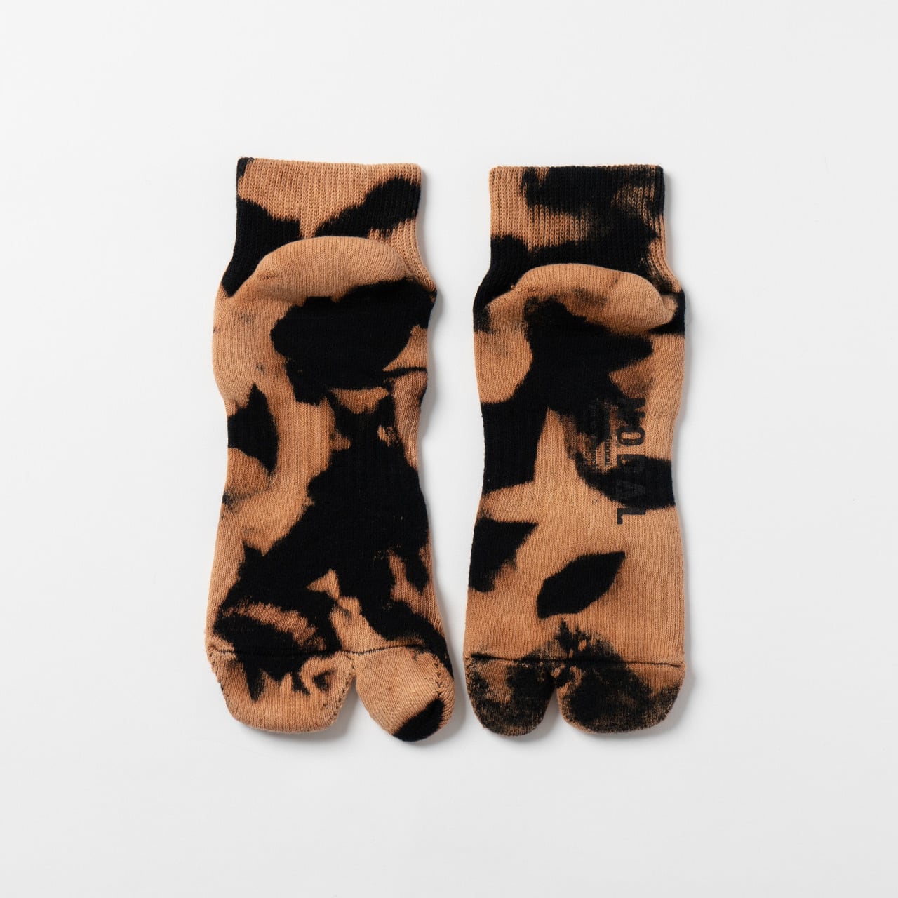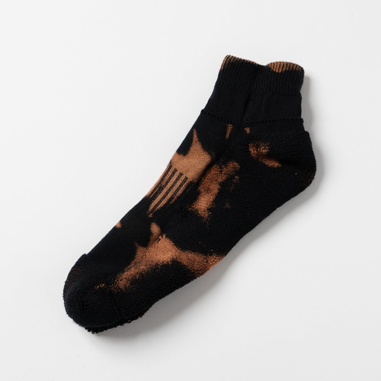 デニムの産地として名高い岡山県・児島。その地に根付く熟練の染色・漂白技術を活かし、ブリーチ加工を施した一足です。一点一点異なるムラ感や色落ちの表情があり、ヴィンテージアイテムのような奥行きある仕上がりです。足底はパイル編みでやさしい履き心地です。