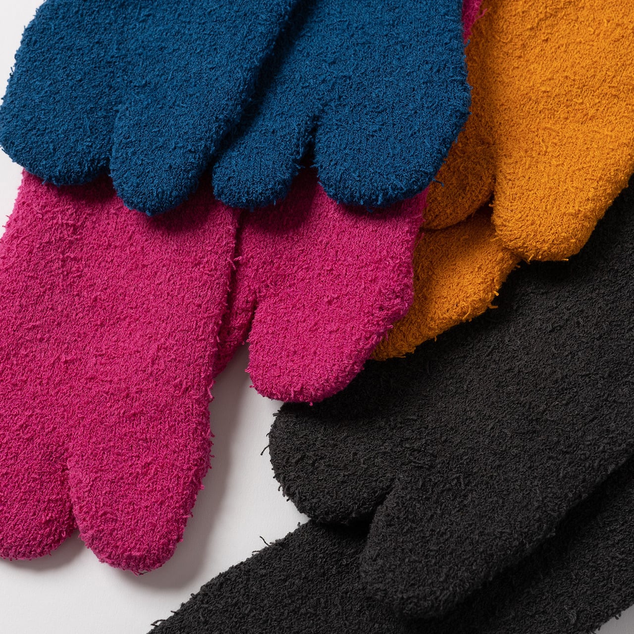 足底はパイル編みでボリューム感を持たせ、履き口はソフトな仕上げで締め付けにくく快適です。カール糸の特性により、毛玉も気になりにくく、長くご愛用いただけます。