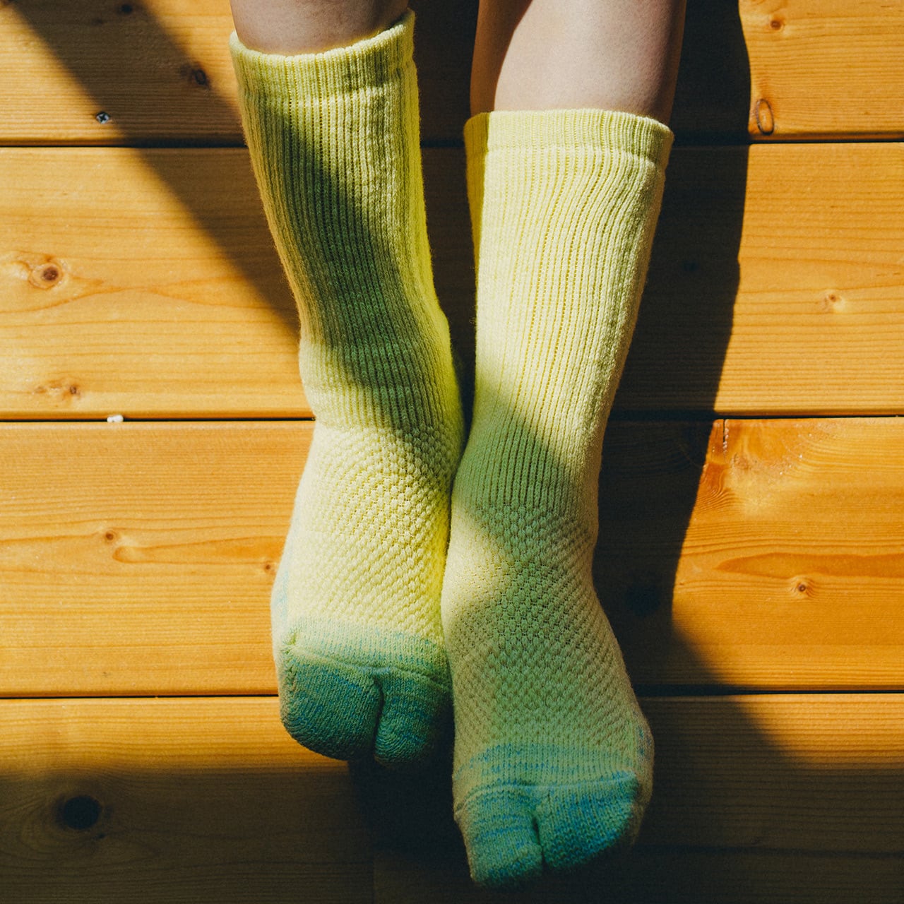 つま先は無縫製で快適フィット、甲部分はメッシュ編みで通気性を確保し蒸れを防止。
