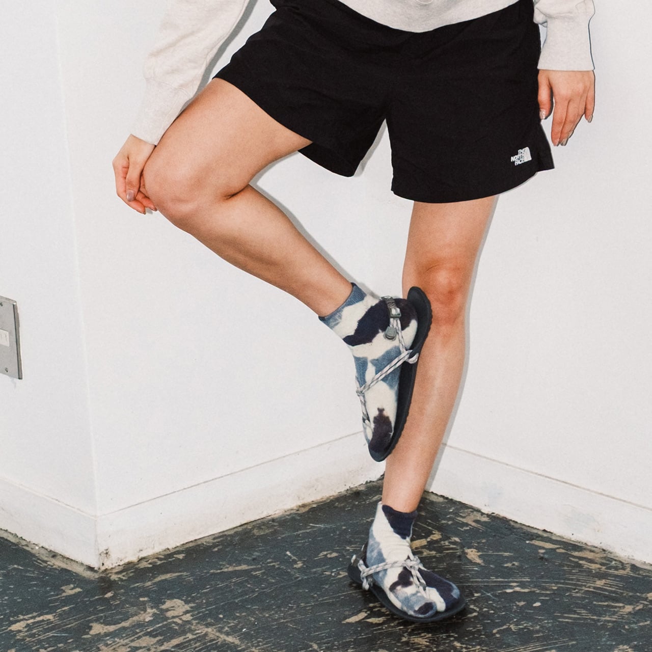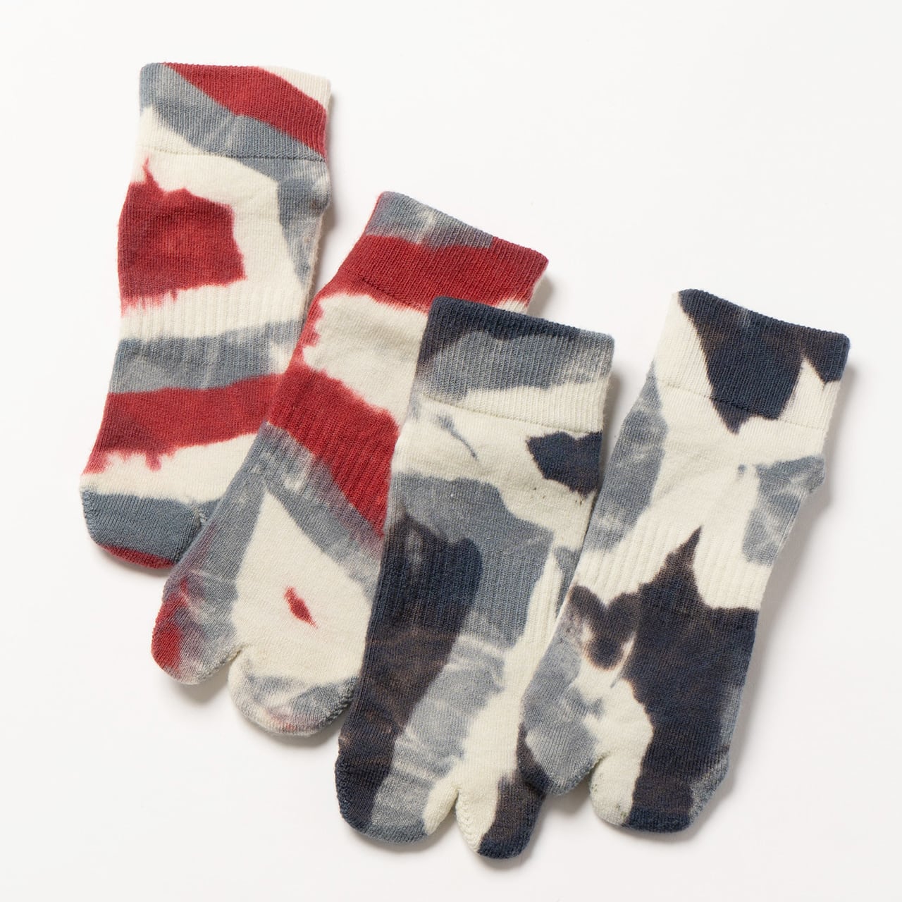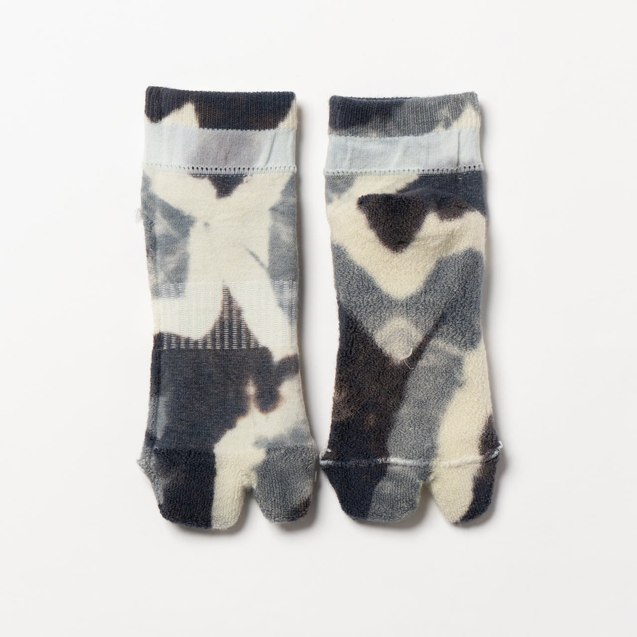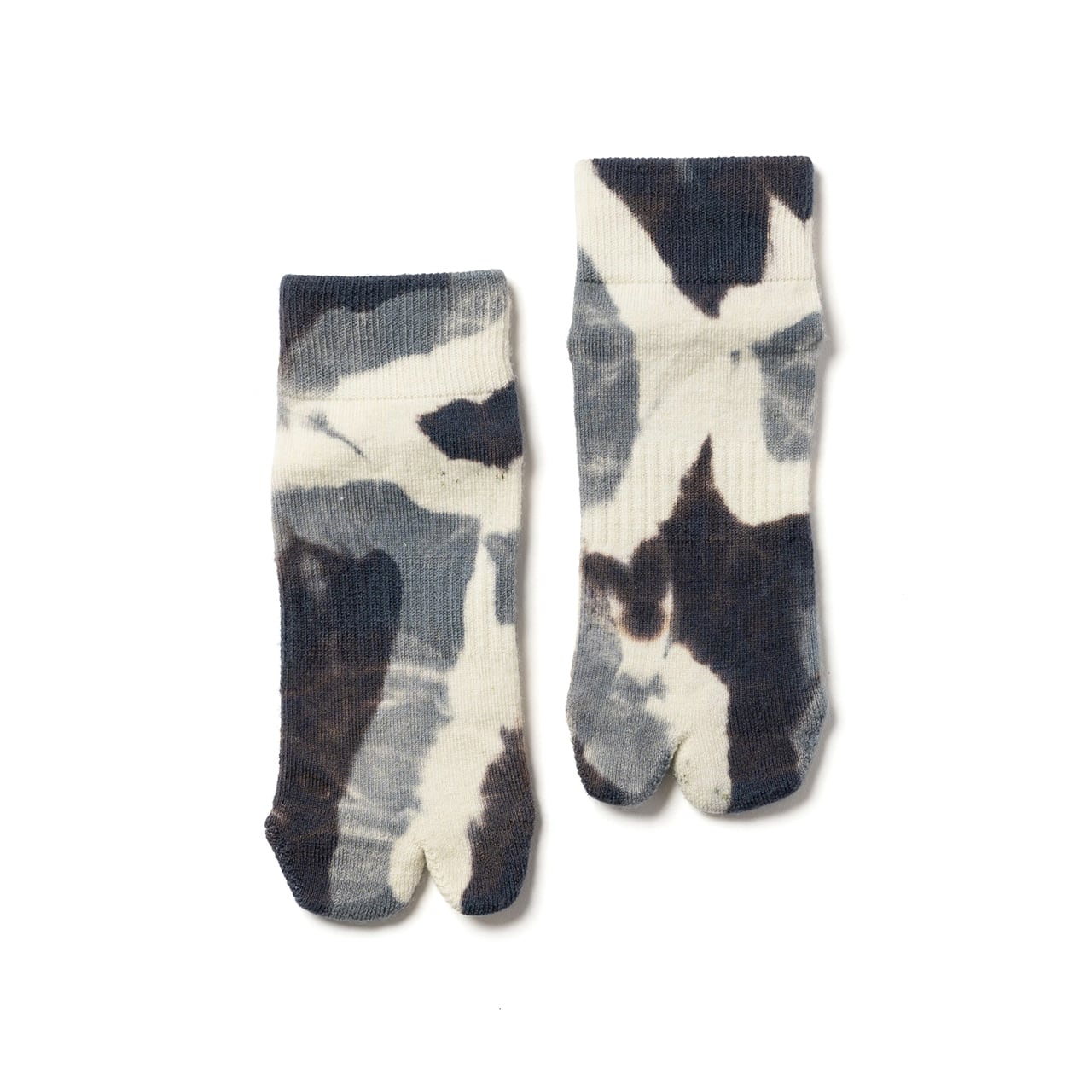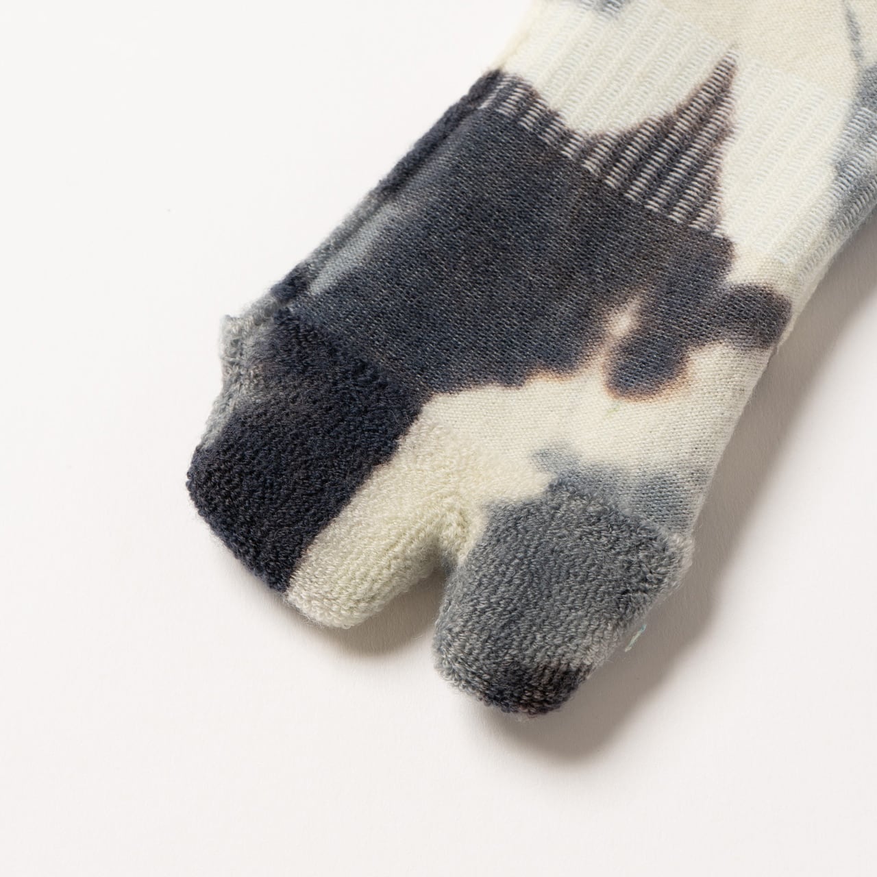 上質なメリノウールを使用し、注染によるタイダイ染めを施した一足。