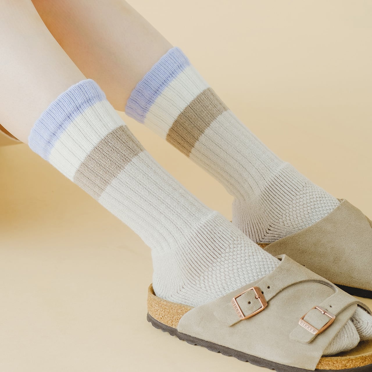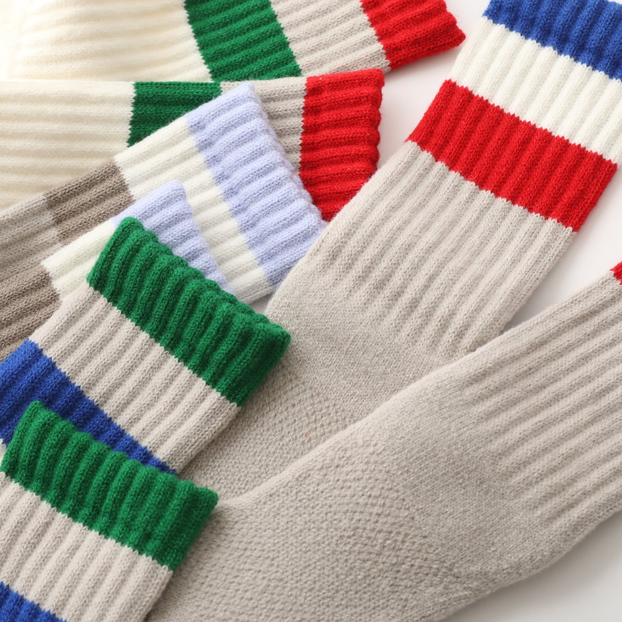 80年代デザインの魅力を感じる、あたたかいローゲージパイルで仕上げた靴下です。